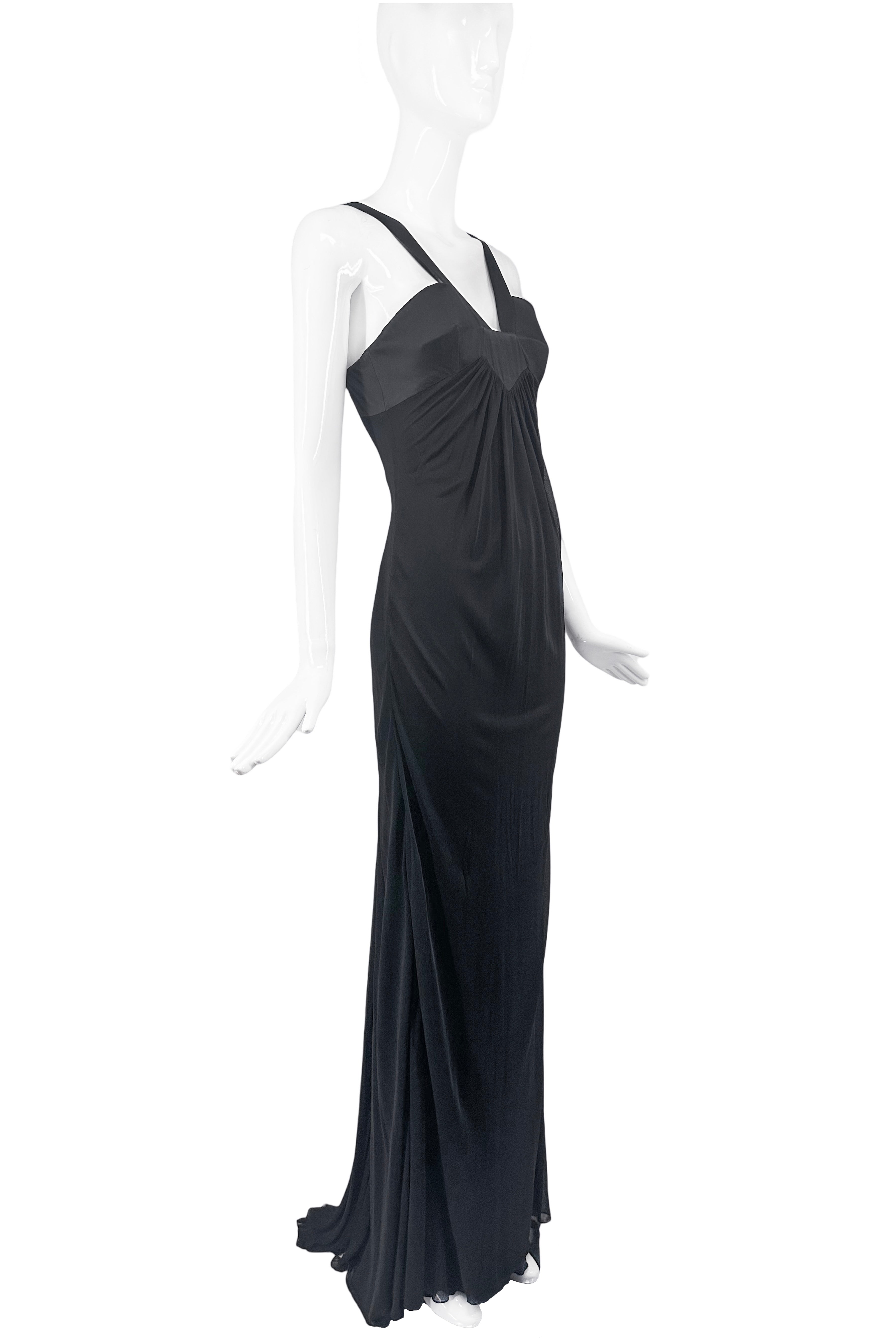 Versace Black Vintage 90's V Neck Halter Build in Bra Dress Gown